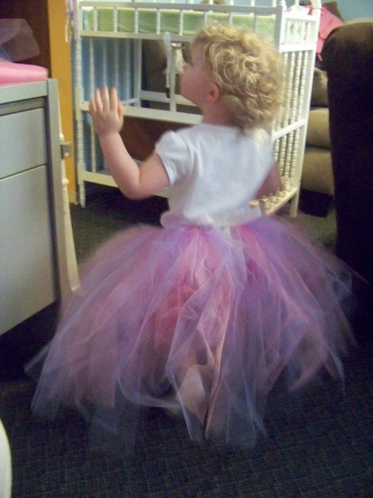 So I found the no sew technique, got 2 colors in shades of purple and pink to cover most of everything in her wardrobe, found tulle on sale when I want to Joann Fabrics and bought a 2 inch thick ribbon that sized up for a 4 year old's waist. That way, I could tie it tight until she is that waist size and won't need to make another until she hits size 4 or needs them in other colors.